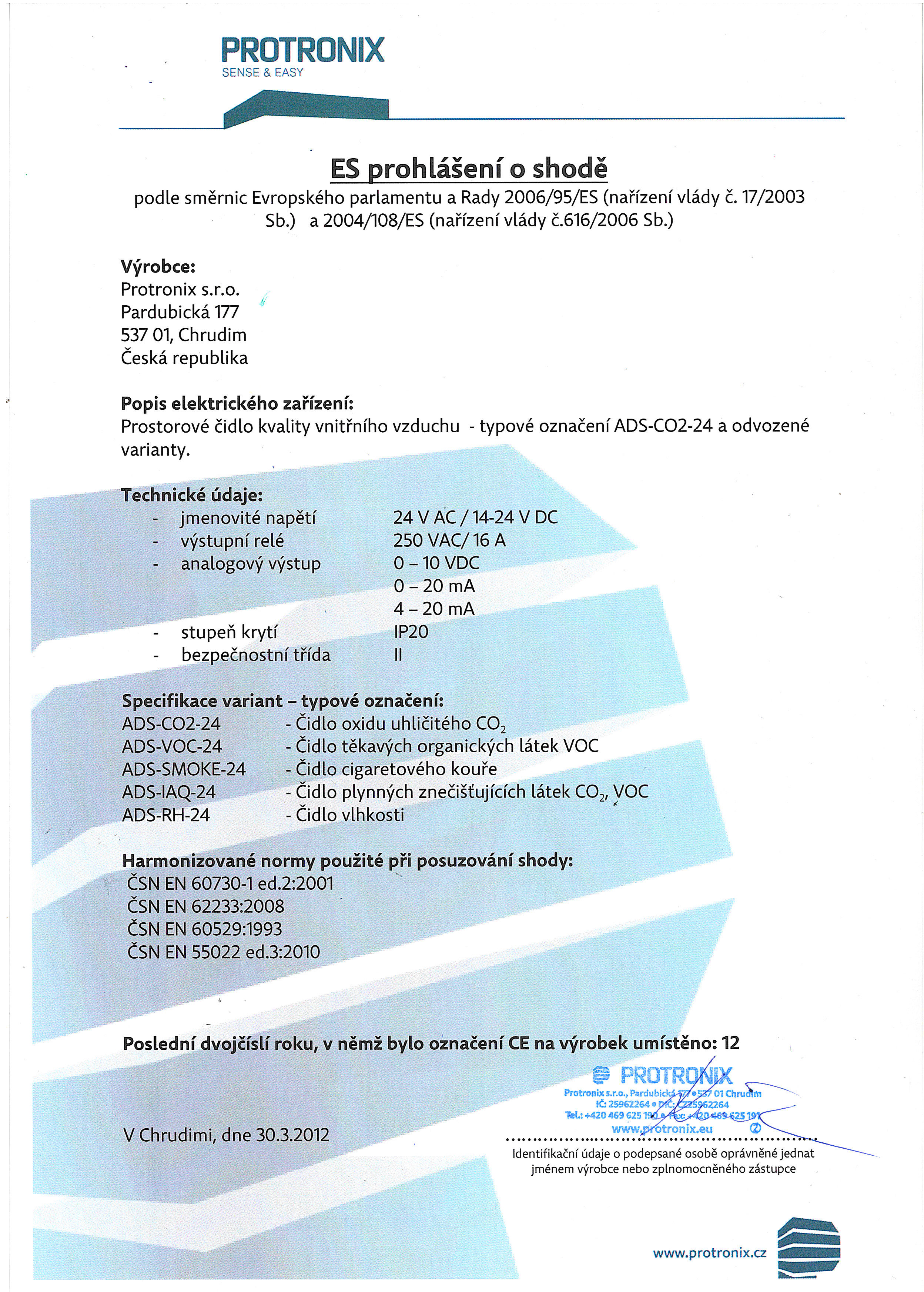 Snímač ADS-SMOKE-24 meria koncentráciu zložiek cigaretového dymu v miestnosti. Používa sa pre ovládanie ventilácie a pre monitoring kvality vzduchu v priestoroch obývaných ľuďmi, ako sú reštaurácie, krčmy, obchody, kancelárie a podobne